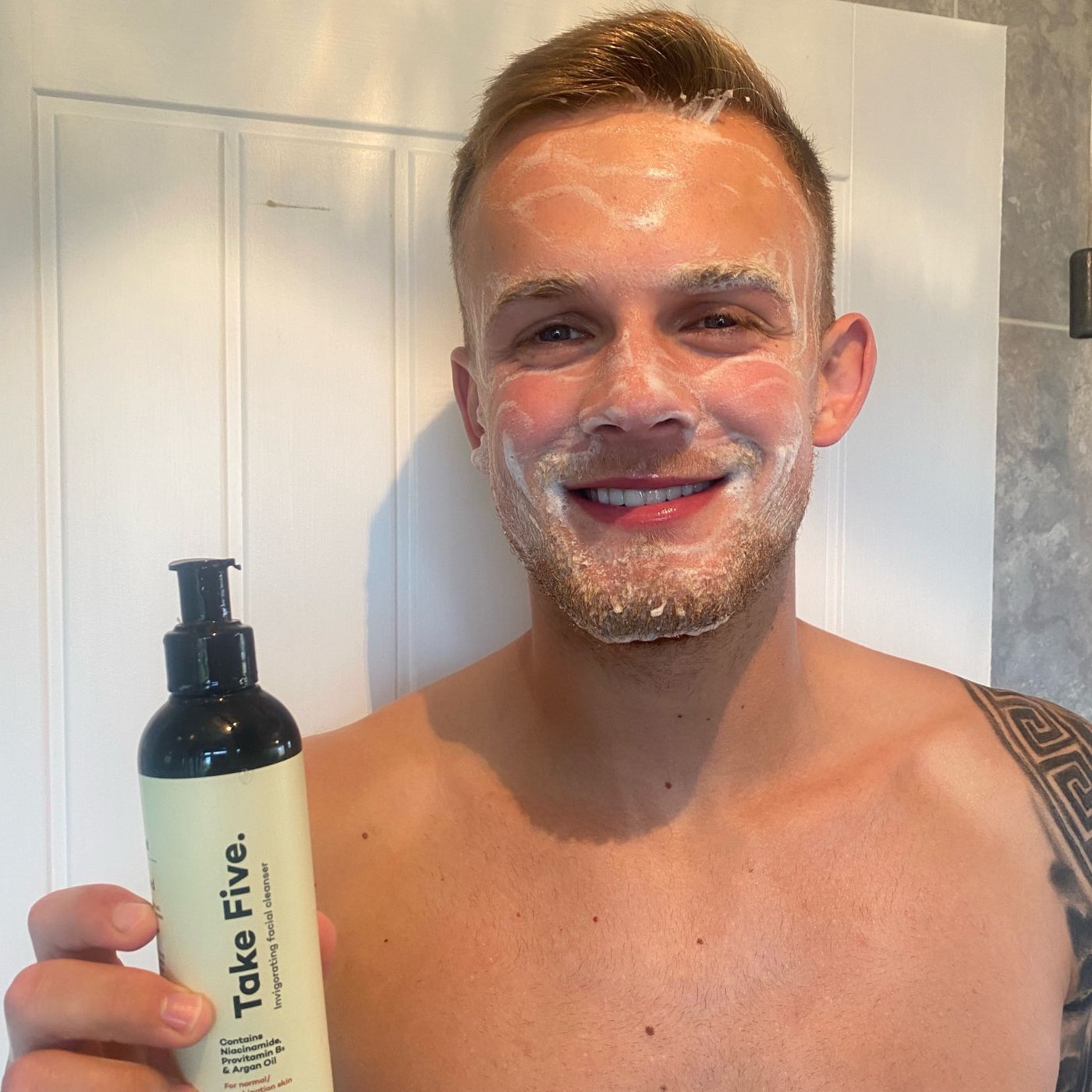 I named our Invigorating Facial Cleanser 'Take Five' to serve as a daily reminder for men to pause, take five minutes, and prioritise what truly matters: their wellbeing.